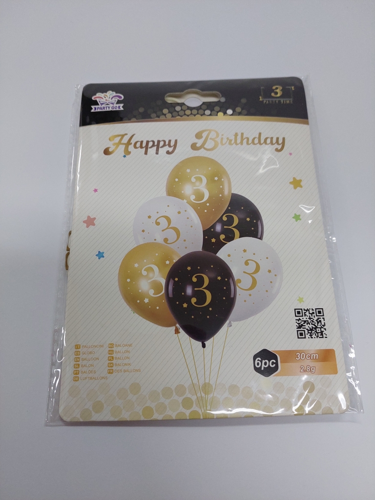 Balionai "Party Go" skaičius ''3" įvairių spl. š vnt.-30cm.