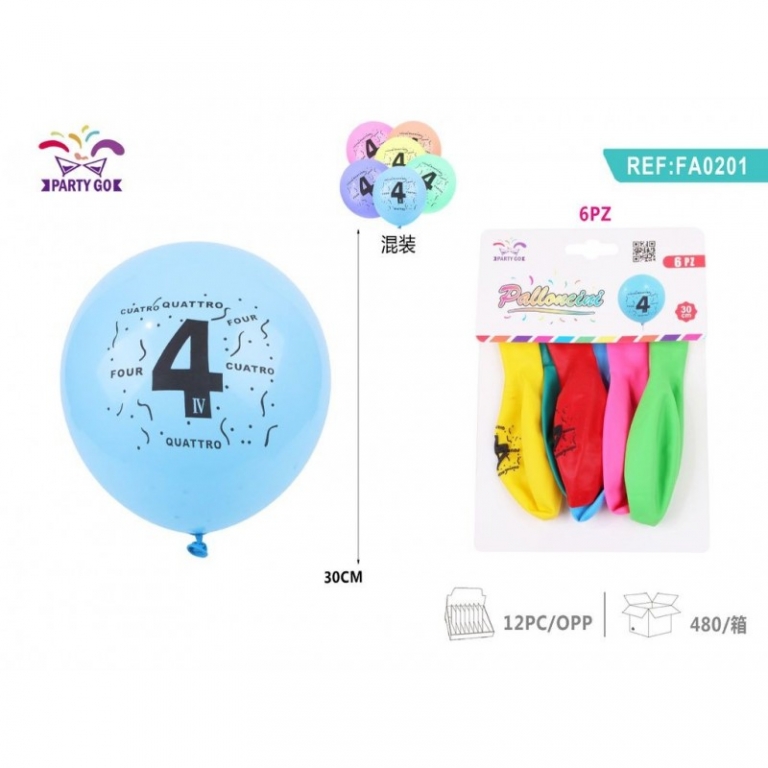 Balionai "Party Go" skaičius ''4" įvairių spl.