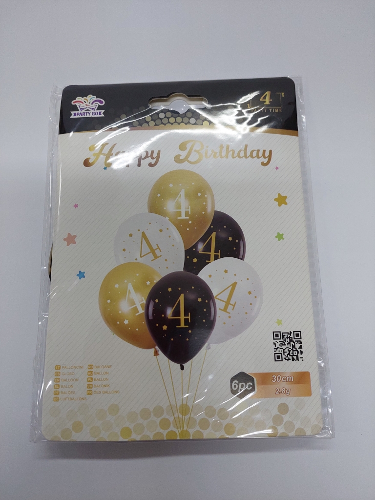 Balionai "Party Go" skaičius ''4" įvairių spl. š vnt.-30cm.