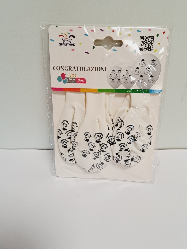 Balionai "Party Go" su šypsenėlėmis baltos spl. 30cm.-6vnt.