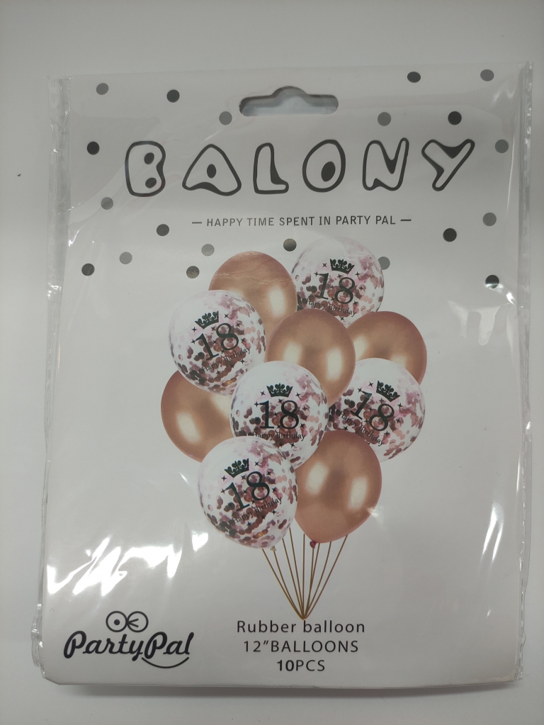 Balionai perlamutiniai, raudoni, 10vnt. su skaičiumi "18"