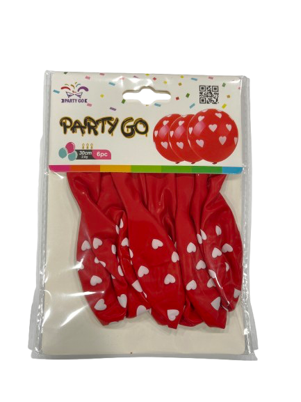 Balionai raudonos,baltos sp.su širdelėmis 30cm 6vnt