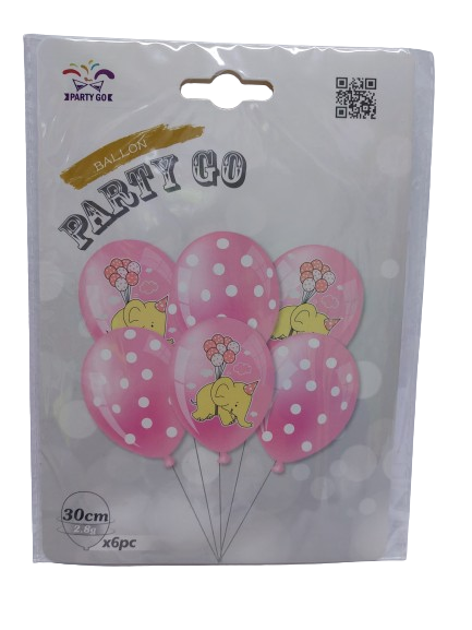 Balionai rožinės spalvos su drambliuku, 30cm, 6vnt,