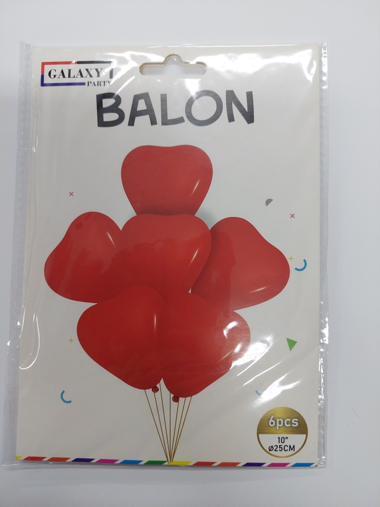 Balionai širdelės balta,raudona sp. 6vnt.-25cm.