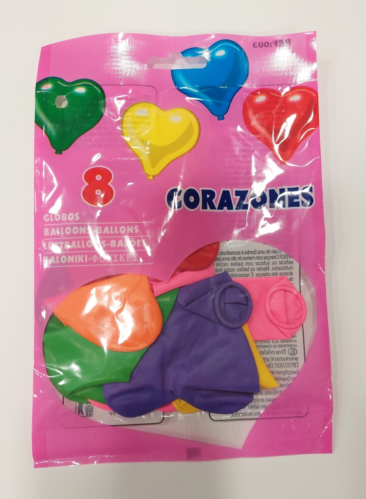 Balionai širdelės form. įvair. spl. 8 vnt.