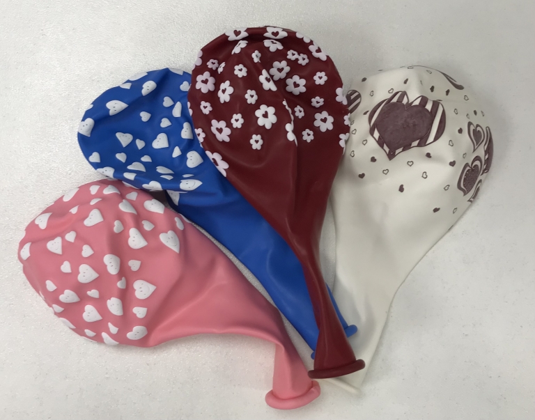 Balionai spalvoti su piešiniu (širdelė) 4-ių rūšįų
