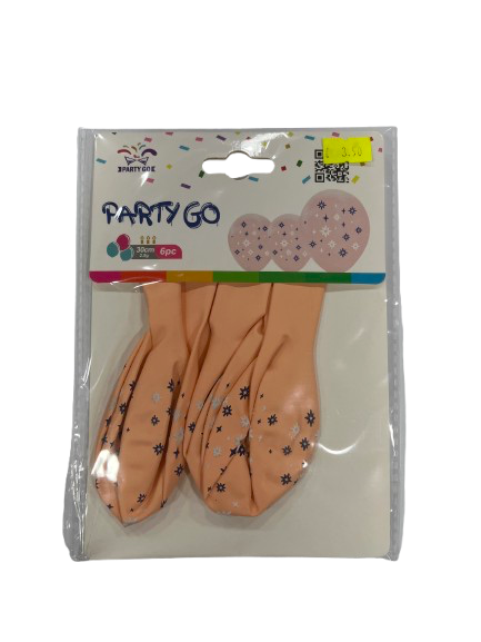 Balionai šv.oranžinės sp.su dekoru 6vnt. 30cm