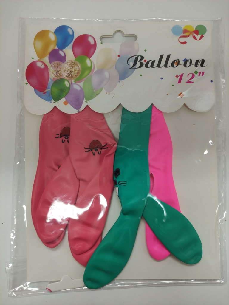 Balionai zuikio formos įvairių spalvų 4 vnt
