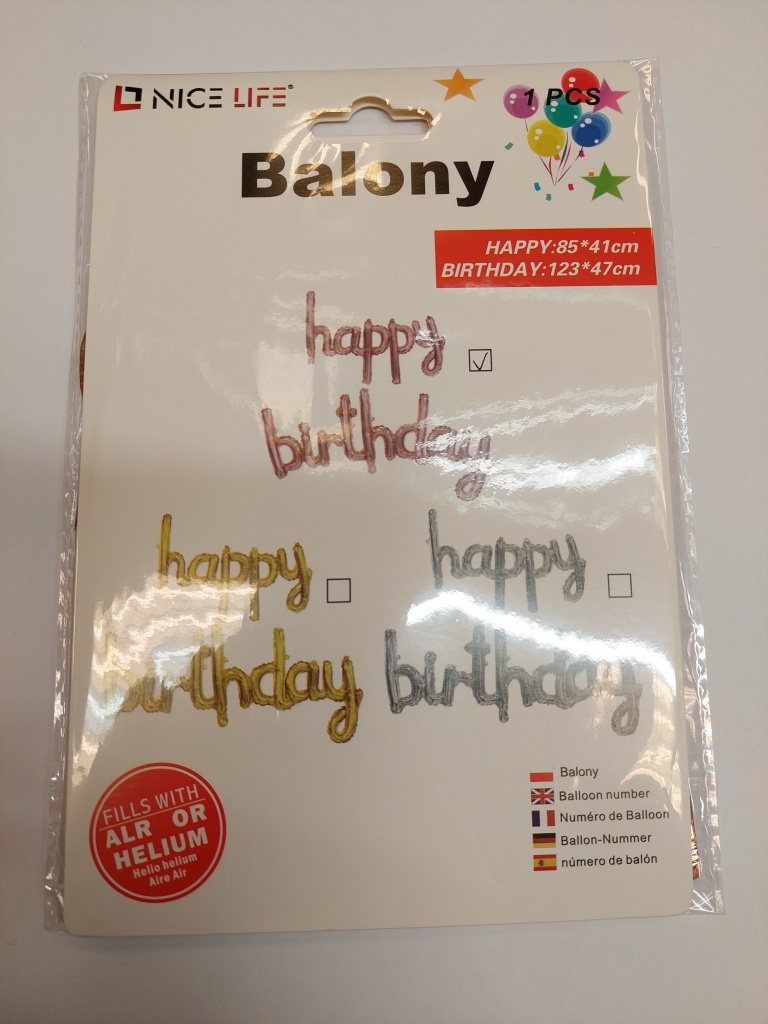 Balionas folijos raidės Happy Birthday rožinės sp