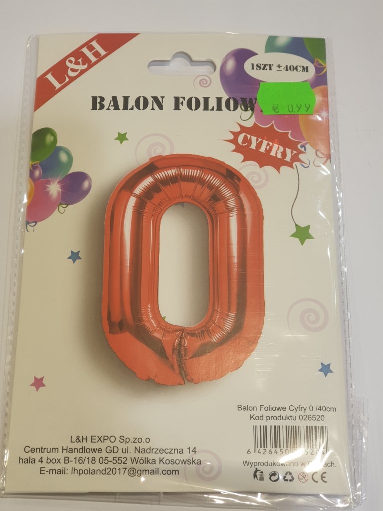 Balionas folijos skaičius "0" 40cm raudonas