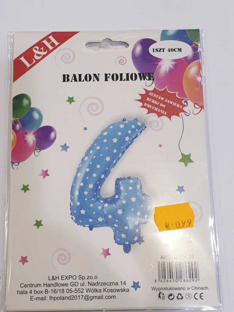 Balionas folijos skaičius "4" 40cm mėlynas