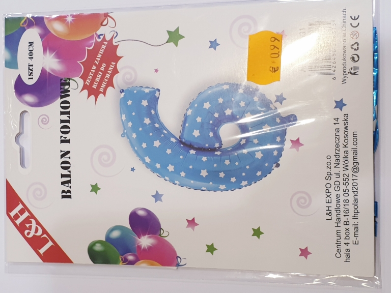 Balionas folijos skaičius "6" 40cm mėlynas