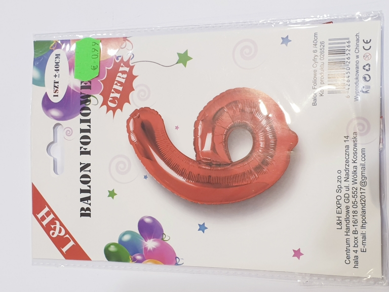 Balionas folijos skaičius "6" 40cm raudonas
