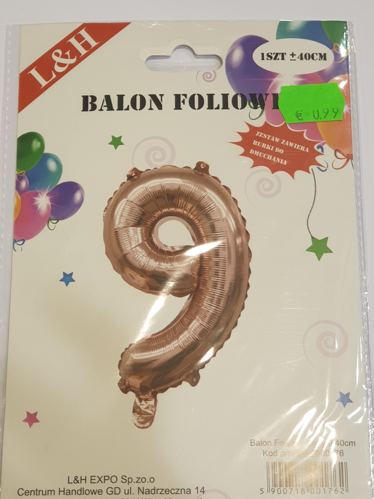 Balionas folijos skaičius "9" 40cm vario spalvos