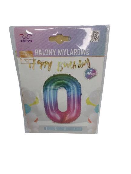 Balionas folinis skaičius "0" 40cm. įvairiaspalvis