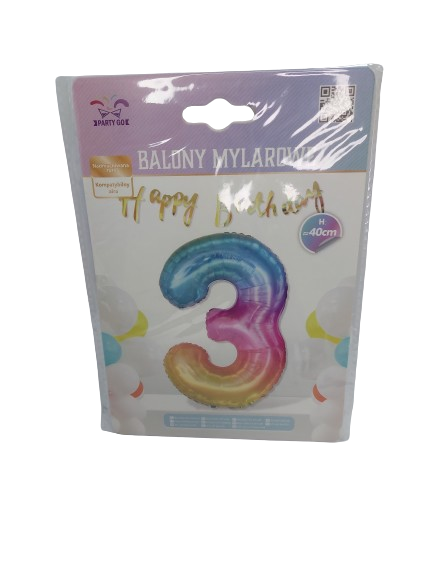 Balionas folinis skaičius "3" 40cm. įvairiaspalvis