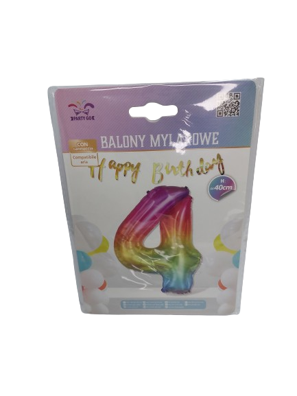Balionas folinis skaičius "4" 40cm. įvairiaspalvis