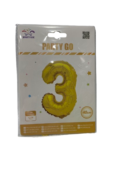 Balionas iš folijos skaičius 3 aukso sp.40cm