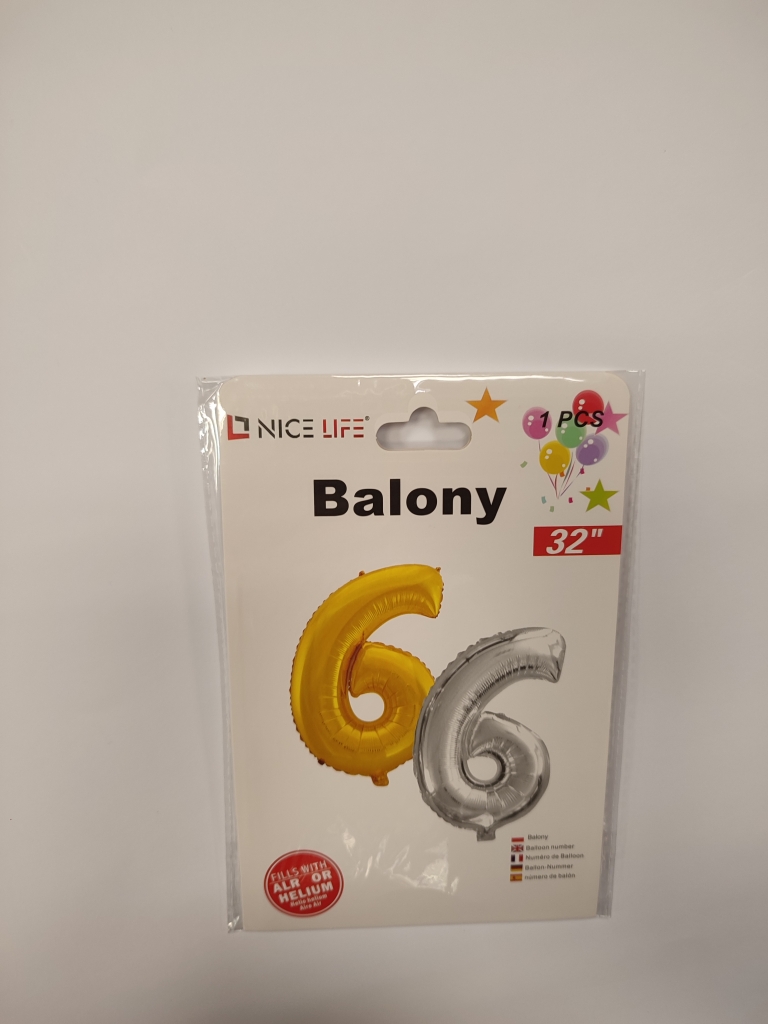 Balionas skaičius-6 folijos 80cm auksinis arba sidabrinis