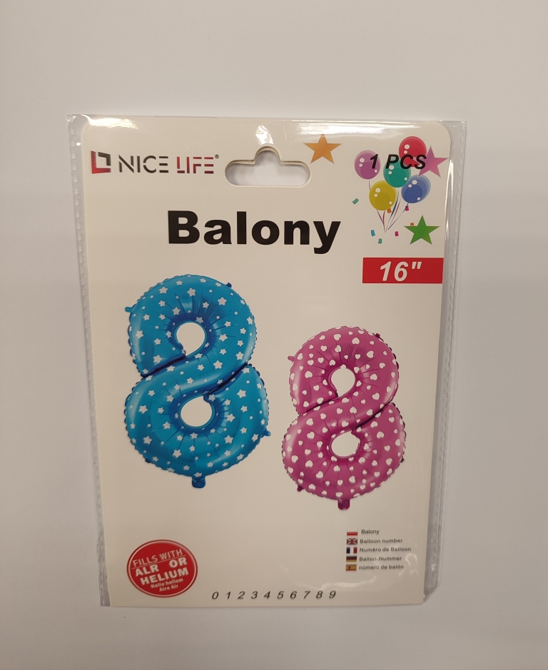 Balionas skaičius-8 folijos 40cm mėlynos sp.su žvaigždėmis