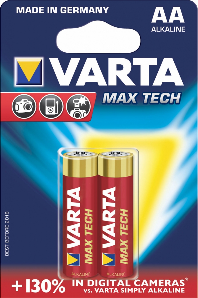 Baterija Varta AA alkaline 2vnt. Max Tech raudoni