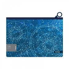 BERLINGO Aplankas vokas su užtrauktuku A4 zodiako ženklai blizgus mėlynas