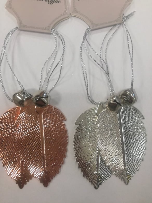 Blizgūs medžio lapai prikabinami kaip dekoracija.