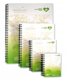 A4; iš 100 % perdirbtų žaliavų + CO2 kompensavimo projektas; 96 lapai; tamsiai žaliais langeliais; su trumpa spirale.