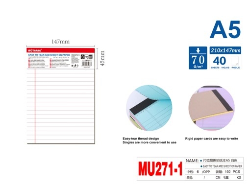 Bloknotas A5 linija baltos sp. 40lapų MOTARRO