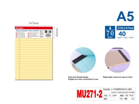 Bloknotas A5 linija geltonos sp. 40lapų MOTARRO