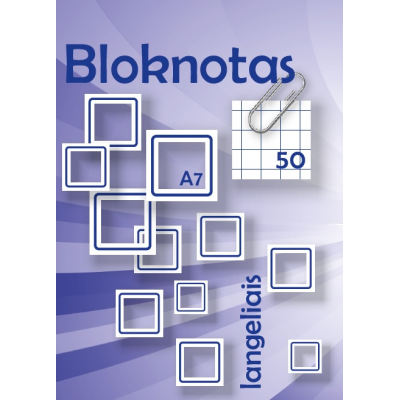 Bloknotas, A7, 50 lapų, langeliais, 70gsm, klijuotas viršuje