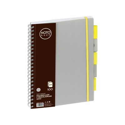 su spirale šone, su spalvotais skirtukais, pilkos spalvos plastikinis viršelis