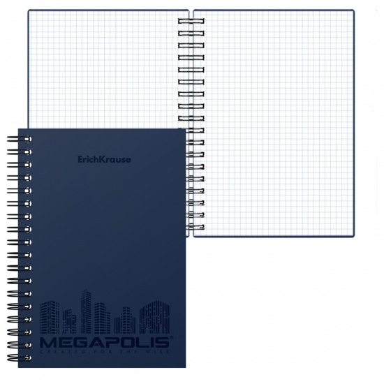 Bloknotas su spirale plastikiniu viršeliu ErichKrause MEGAPOLIS mėlynas A6.80 lapų langeliais