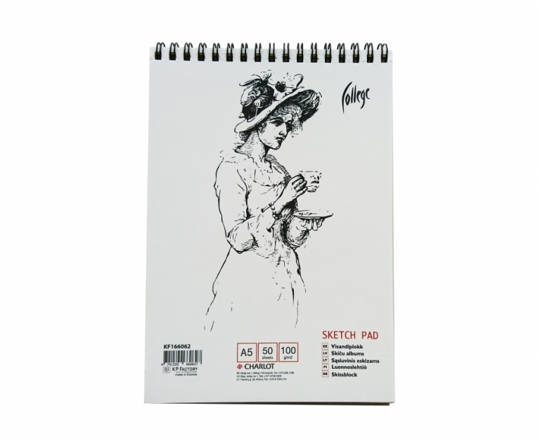 Blonknotas eskizams Mamlyn A5, 50 lapų, 100g, su spirale šone