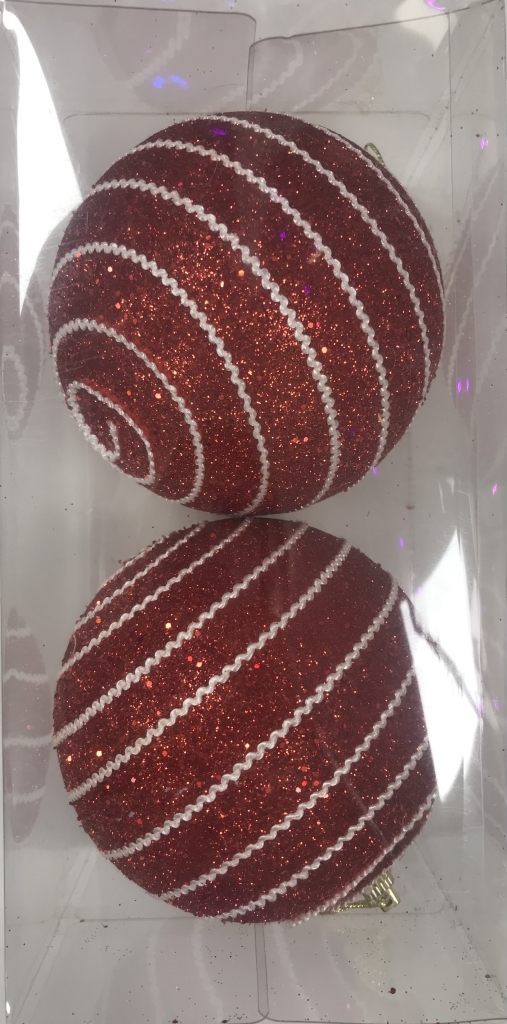 Burbulai kalėdiniai raudonos spalvos su baltom linijom iš polistirolio 2vnt
