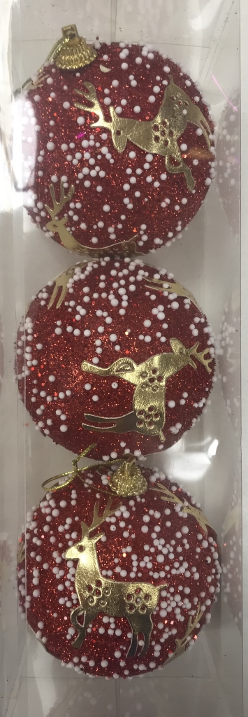 Burbulai raudoni su auksiniais elniais ir baltais elementais 3vnt