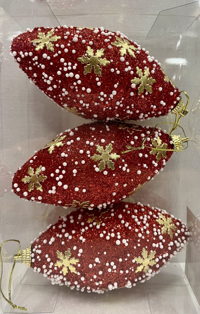 Burbulai raudonos spalvos su snaigėmis 3vnt.