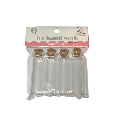 Buteliukai stikliniai su kamštiniu dangčiu 4 vnt 22x70mm