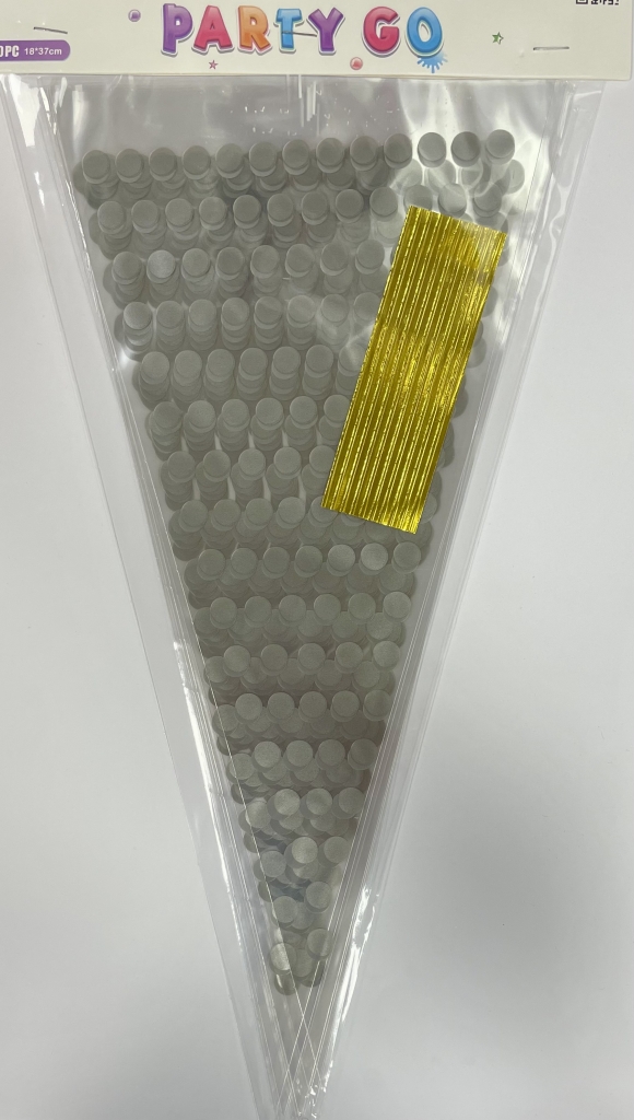 Celofaninis maišelis saldainiams, sidabrinis (10 vnt, 18x37 cm) – puikus pasirinkimas, norint dovanoti saldumynus stilingai ir praktiškai! Šie celofaniniai maišeliai suteikia elegantišką išvaizdą bet kokiai dovanai, o jų skaidri medžiaga leidžia pasigirti jūsų paruoštomis saldumynų gėrybėmis.