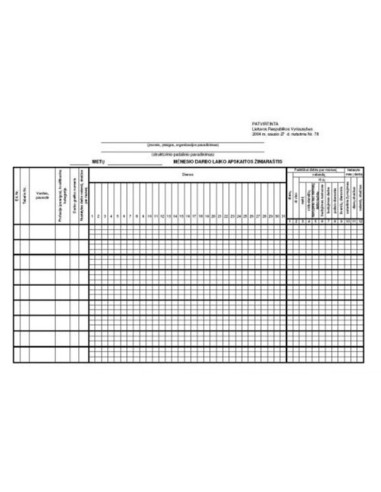 Darbo laiko apskaitos žiniaraščio A3 įdėtinis lapas. 70gr ofsetinis popierius. Parduodamas lapais.