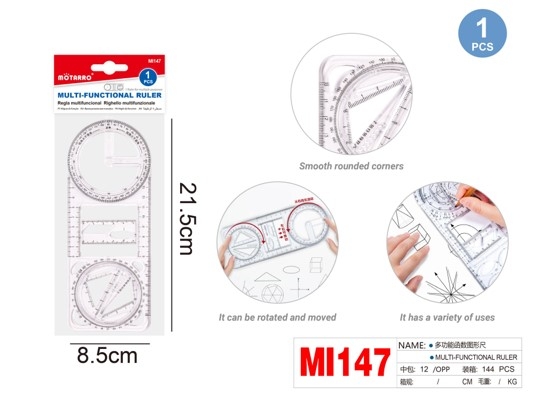 Daugiafunkcis geometrinių figūrų ir funkcijų liniuotės rinkinys MOTARRO