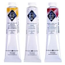 Aukštos kokybės aliejiniai dažai dailininkams metalinėse tūtelėse pagaminti naudojant natūralius pigmentus ir neorganinių pigmentų analogus.