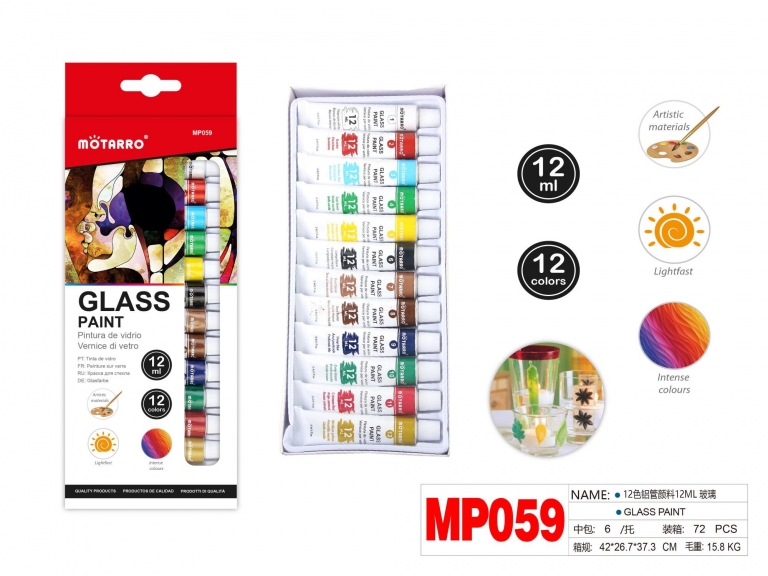 Dažai stiklui 12spalvų x 12ml MOTARRO