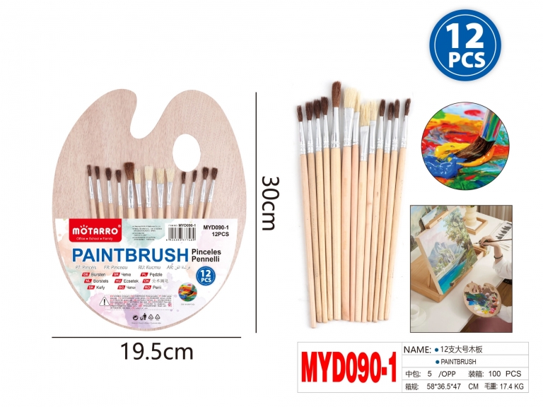 Dažų maišymo paletė 300x240x5mm medinė + 12vnt teptukų MOTARRO
