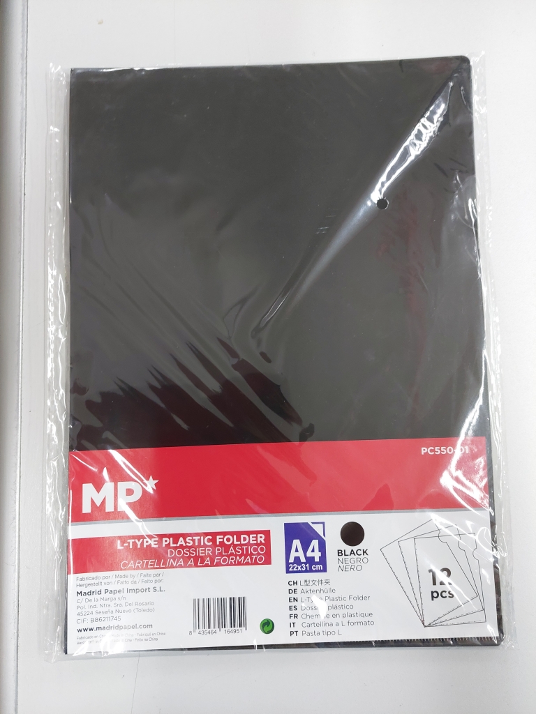Dėklas dokumentams A4 x 12 vnt L forma juodos sp.