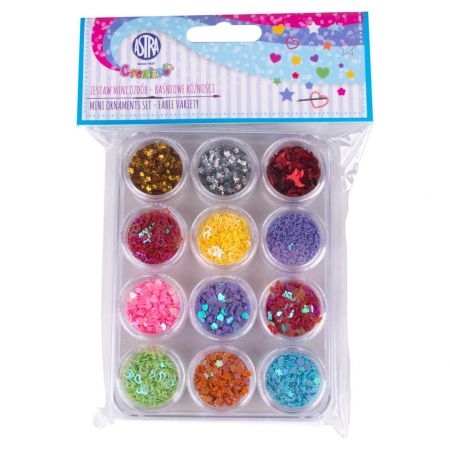 Dekoracija blizgučiai dežutėje 12spalvų, Astra