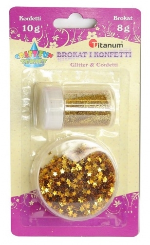 Dekoracija blizgučių rinkinys aukso glitter ir confeti Titanum