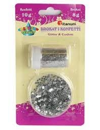 Dekoracija blizgučių rinkinys sidabrinis ir confeti Titanum