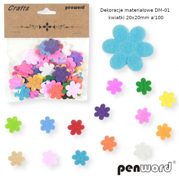 Dekoracija Gėlės, medžiaginės, 100vnt. 20x20mm DM-01 PENWORD