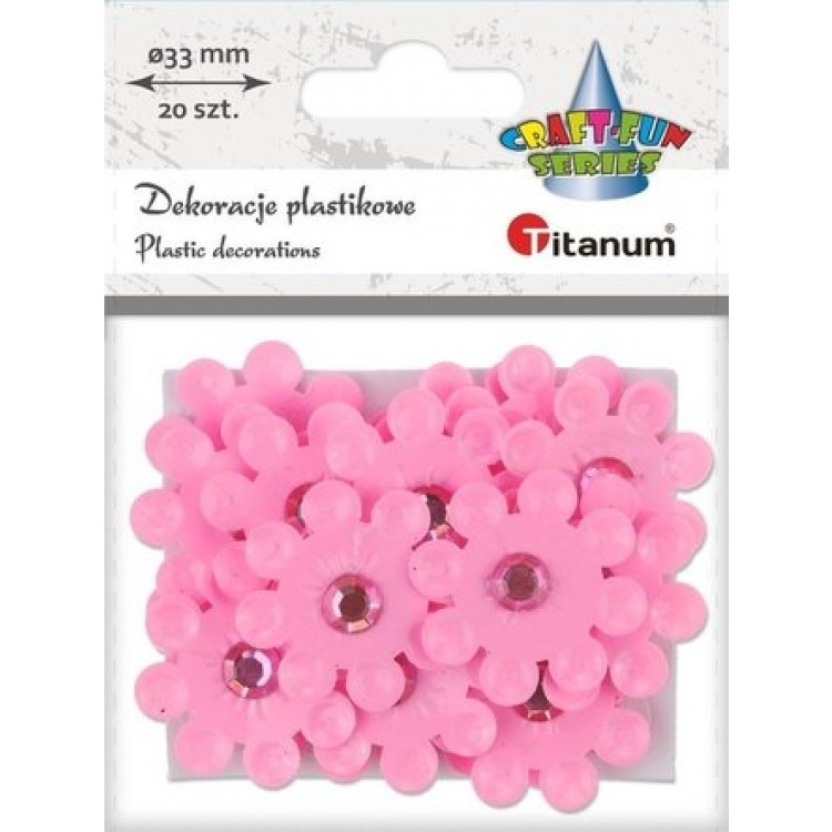 Dekoracija Gėlės, (plastikas), lipnios, rožinės, 20vnt.x33mm, TITANUM